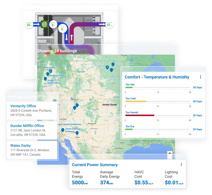 Modern platforms designed for light-commercial buildings like UBX now make that possible. Cloud-based control systems built around wireless sensors and long-range communication give teams portfolio-wide visibility without complex networking or requiring construction. From one dashboard, managers can:
