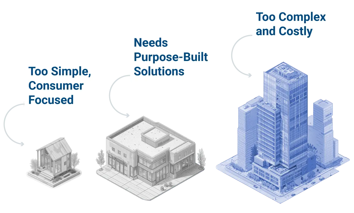 There are more than 5.5 million light commercial buildings under 50,000 square feet in the United States, yet more than 86 percent still lack any form of advanced automation or monitoring. As discussed in our earlier blog, “Thermostats Don’t Scale Up,” these buildings have been left behind because the solutions available to them have never truly fit their needs. The reasons are structural, economic, and operational. They reveal why traditional building automation systems (BAS) were never designed for this segment.